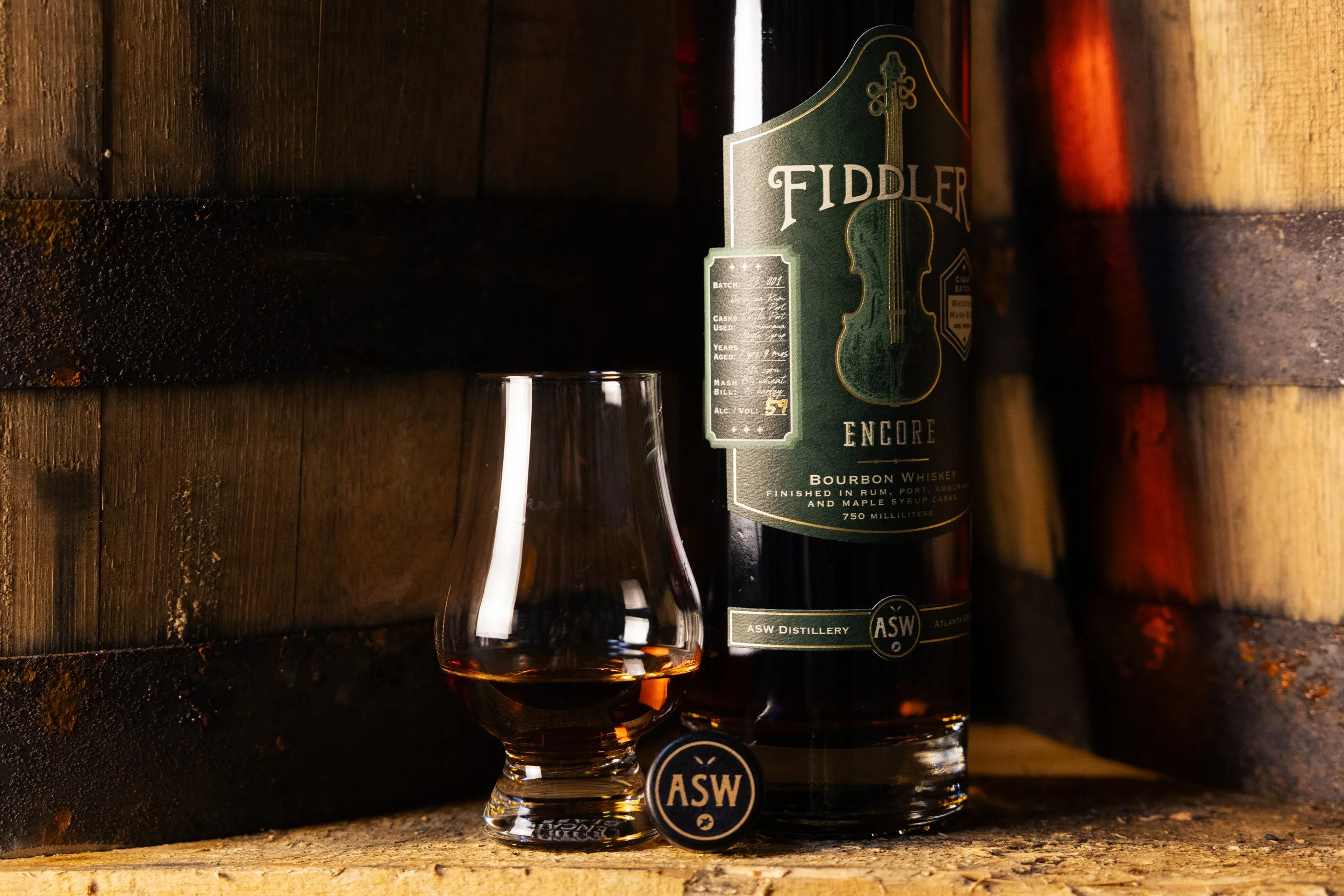 Fill, cork, and label your own bottle of ASW’s Fiddler Encore Bourbon- Georgia Oak— Double Gold Medal winner at the 2025 San Francisco World Spirits Competition & the 2025 winner of the Best of Class award for Small Batch Bourbons!